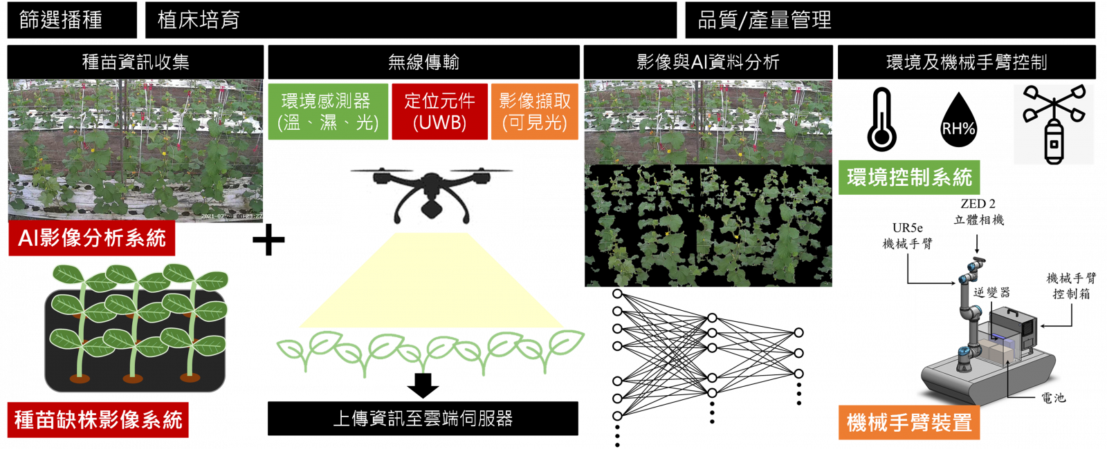 2.微飛行器AI監控收集農業設施內環境資訊,進行環境與苗株生長相關性探討,以提供最佳生長環境。
